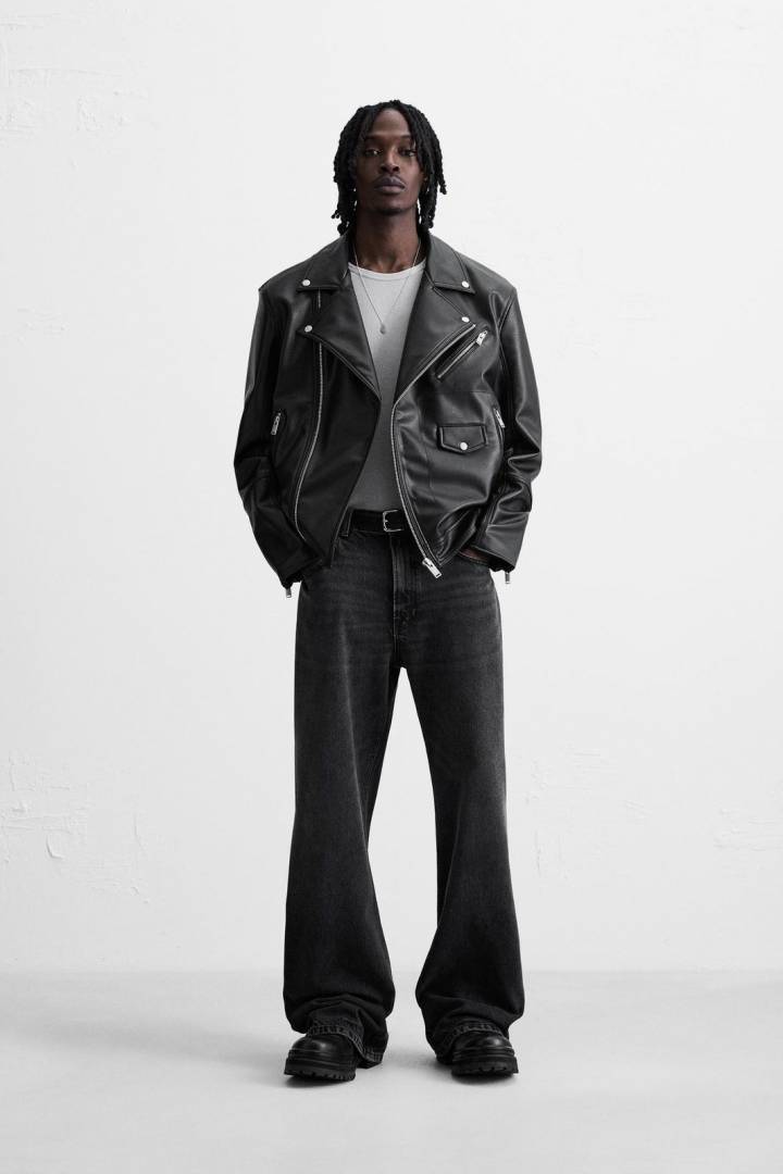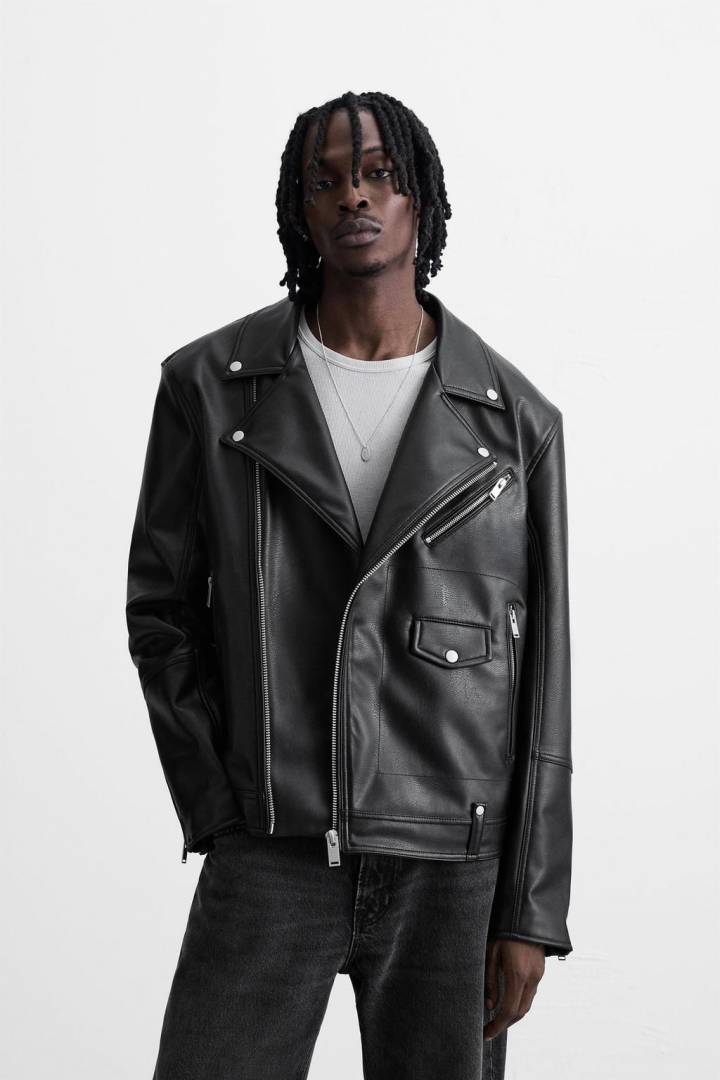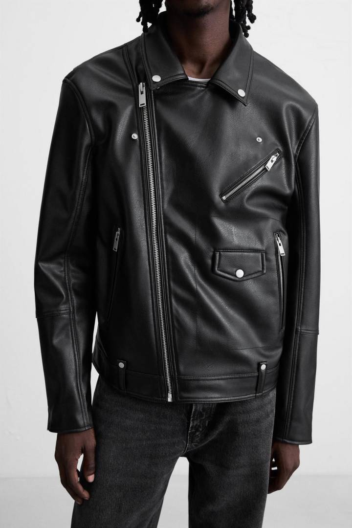 .ZARA.IMPORTED.LEATHER.FABRIC.CROSS.ZIPPER.VERY.PREMIUM.BIKER.JACKET.MR114
